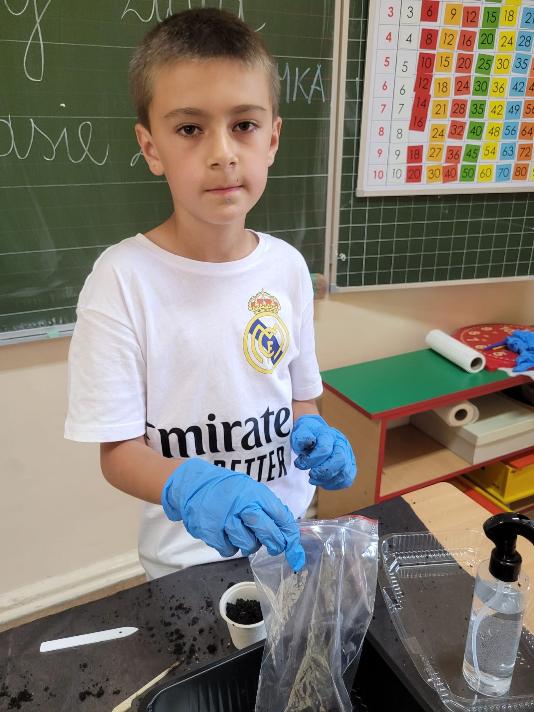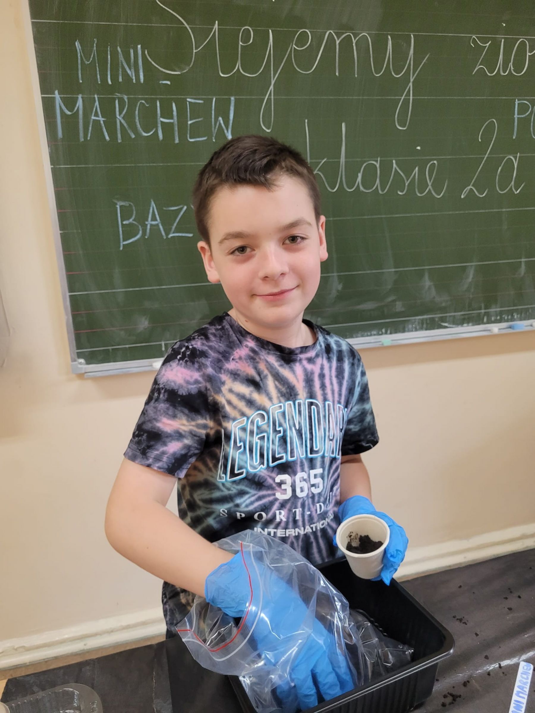 Uczniowie klas IIa i II b naszej szkoły z wielkim zapałem i radością wykorzystali podarowane im zestawy mini ogródków do rozsiewu owoców, warzyw i ziół.