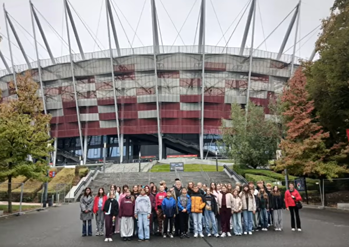 W pierwszy dzień pomimo kapryśnej pogody uczniowie odwiedzili Cmentarz na Powązkach, spacerowali w Łazienkach, następnie jechali metrem, gdzie celem podróży był Stadion Narodowy im. K.Górskiego.