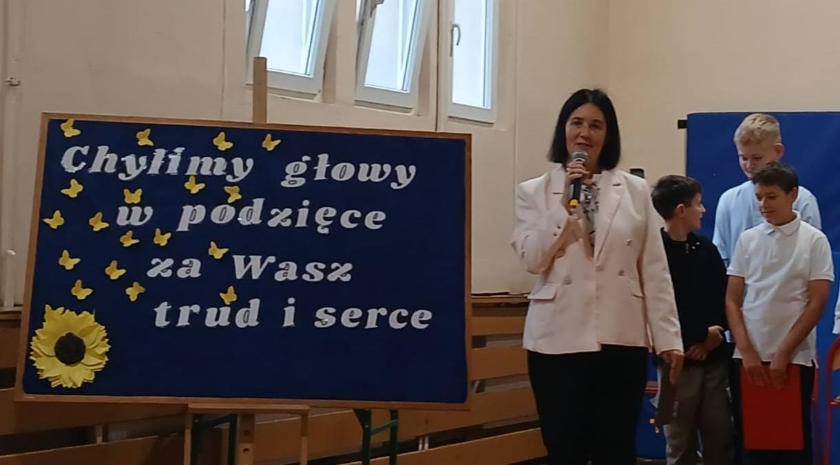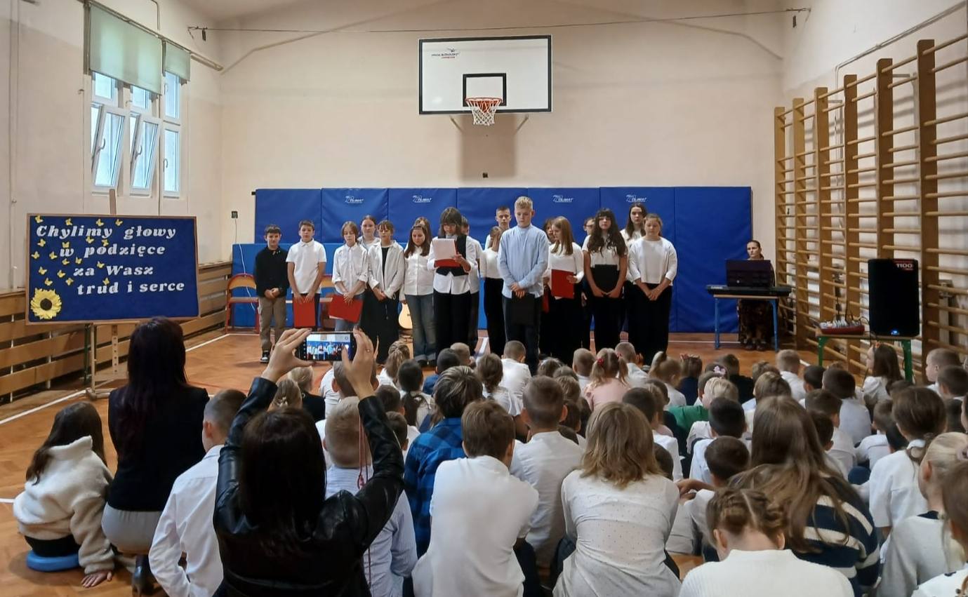 Dzisiejsze święto umilił nam krótki, ale bardzo piękny apel przygotowany przez uczniów klasy 6, którzy w wyjątkowy sposób podziękowali nauczycielom za ich trud i zaangażowanie.